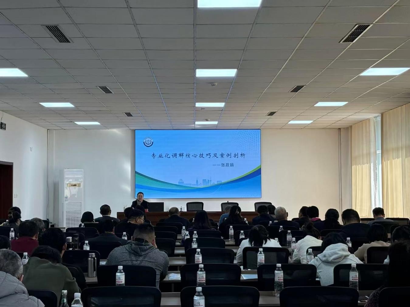 课堂上,张菽娟通过一个个真实案例,拆解调解工作的核心逻辑:用“热心”搭建服务群众的桥梁,用“公心”守护公平正义的底线,用“爱心”温暖矛盾双方的心灵,用“细心”捕捉问题症结的关键,用“耐心”破解僵持不下的困局,用“责任心” 扛起化解纠纷的担当;秉持敬业与奉献的“两精神”,灵活运用背靠背调解法、换位思考法、情理并举法、快调快结法、后发制人法、借助外力法“六方法”。学员们聚精会神、认真记录,不时与授课人互动交流,现场学习氛围浓厚。