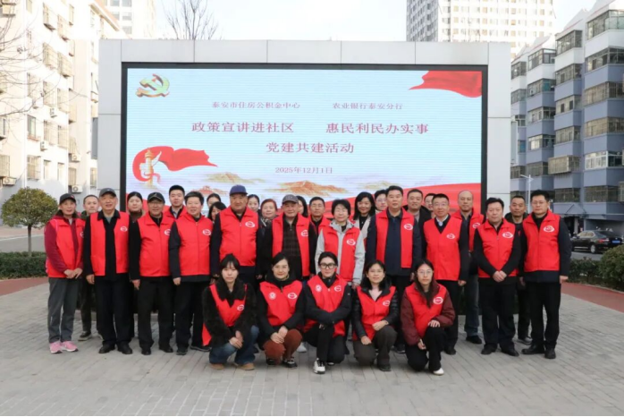 近日,泰安市住房公积金中心联合农业银行泰安分行在泰山区松园社区开展“政策宣讲进社区,惠民利民办实事”党建共建活动。