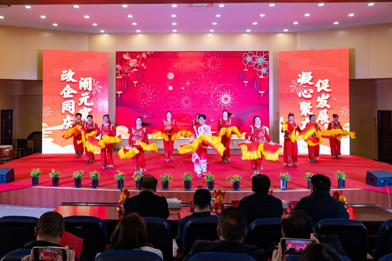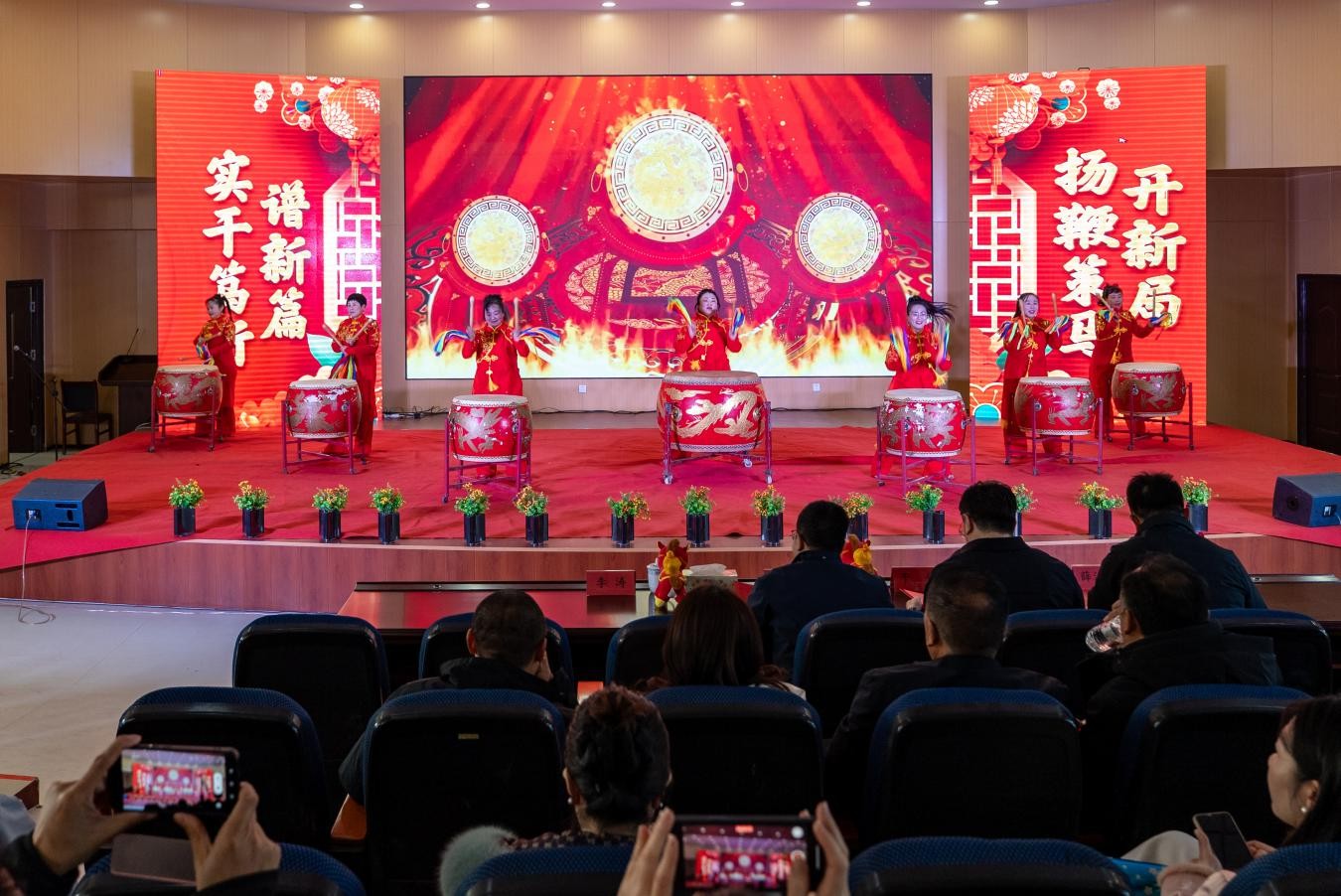此次联欢会,节目组精心筛选了11个精彩节目,涵盖鼓舞、舞蹈、歌伴舞、三句半、歌曲、科普短剧等多个类别。节目轮番上阵,内容丰富多彩且充满正能量,全方位展现了院上镇政企同心同德、锐意进取、奋起正当时的精神风貌。