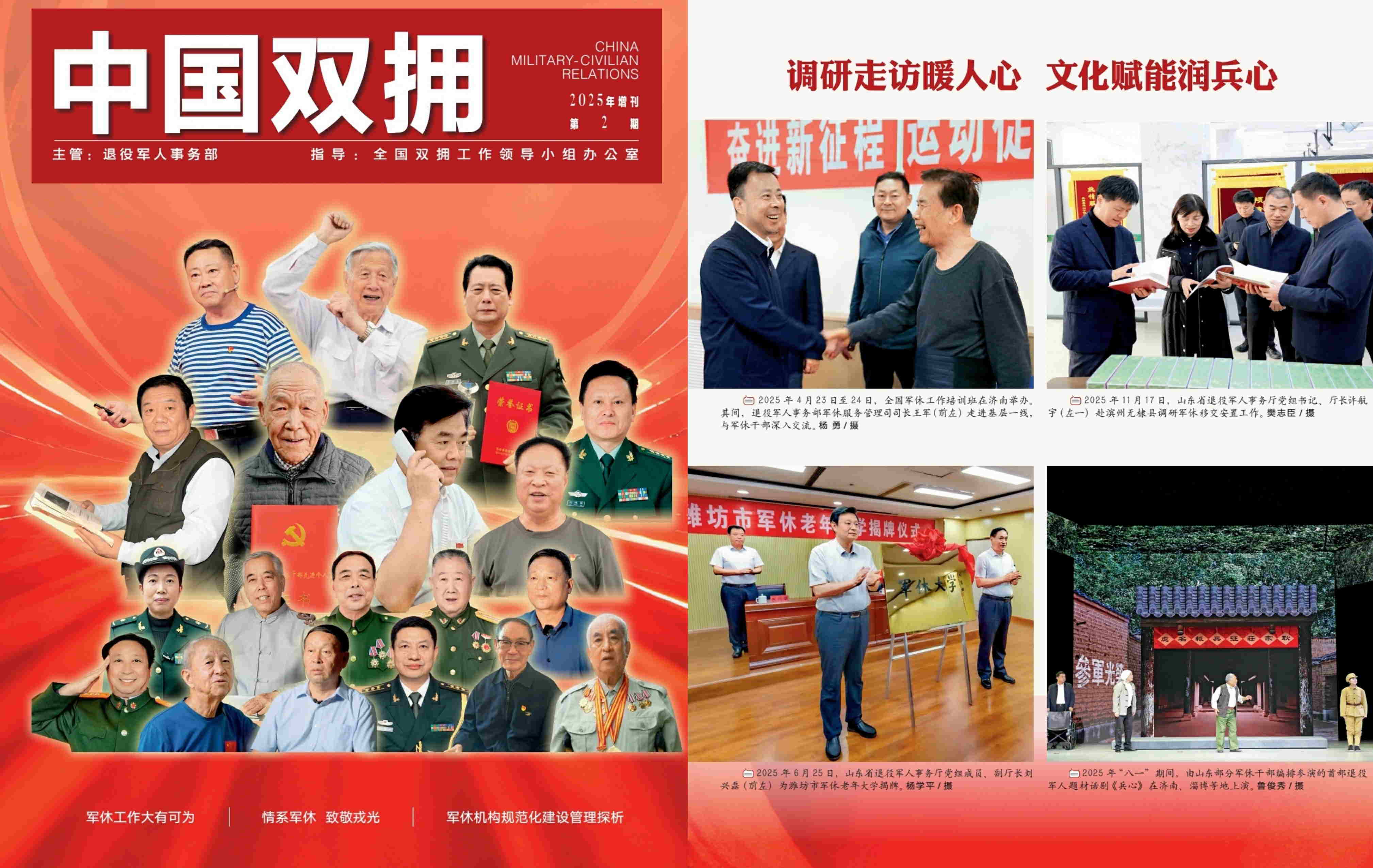 军休增刊搭建成果展示高地。为促进全省军休工作交流互鉴,山东率先在退役军人事务部主管的《中国双拥》杂志推出军休服务管理增刊。增刊设置“开卷”“综述”“品牌建设”“探索创新”“军休文苑”等10余个特色栏目,通过66个页码、60余篇(幅)署名文章及作品,图文并茂展现全省军休系统坚守初心使命、深耕主责主业取得的丰硕成果。同时,全省军休服务管理的经验做法、评论文章、先进事迹等,在《中国退役军人》杂志首期军休增刊“视点”“亮点”“风采”“服务”“记忆”等专栏集中刊发,发稿数量与质量位居全国前列。
