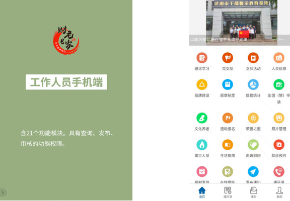 主要内容。一是老同志和工作人员手机端。含13个功能模块。涵盖理论学习、品牌建设、规章制度、活动报名、工资查询、兴趣社团、数据统计等模块,实现了老同志网络课程一键学习、支部动态一键了解、工资待遇一键查询、文体活动一键报名等功能,以及工作人员联系老同志一键拨出、通知消息一键发布、出国事项一键审核、信息数据一键查询等功能。二是工作人员电脑端。含13个模块70项功能,主要有信息维护、查询、审核、导出等功能。其中,“基本信息”部分,涵盖每位老同志60多项基本信息,可以进行添加、修改、批量导入,并支持查询、筛选、下载、导出和打印等功能,建立了“一人一档”的电子档案。“党建管理”部分,设置党委成员、党支部管理、党员管理栏目,实现了党员的动态化分类管理,党组织架构更加清晰明了。