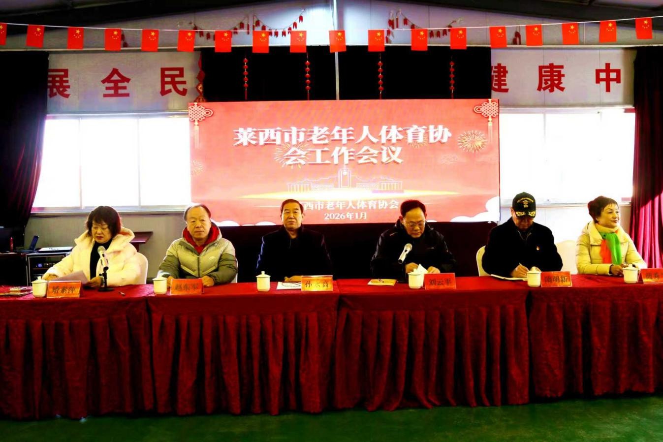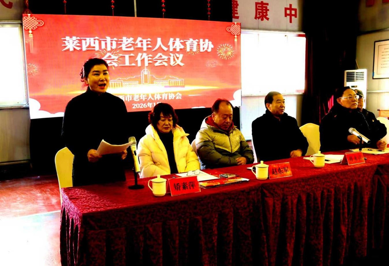 会上,孙永高主席围绕“十五五”良好开局和让体育活动为乡村发展注入新活力这一中心,部署七项工作,绘就特色品牌画卷,谱写乡村振兴华章。一加强基层组织建设,持续加强各级老体协网络建设、制度建设、队伍建设、作风建设和阵地建设,推动老年体育服务向村居延伸、向网格覆盖,筑牢发展根基。二大力普及“适老”体育项目,将普及重点下沉至村居,让太极拳成为村居老年人健身的主流选择。同时,立足老年人身体特点和健身需求,大力开展广场舞、健身球、门球、健身步态等老年人喜闻乐见、便于参与、安全舒缓的“适老”体育健身项目,满足不同年龄、不同兴趣老年人的多样化健身需求,丰富健身供给。三深入推进培训活动,大力弘扬志愿服务精神,全面推进“银龄互助”志愿服务体系建设,组建“银龄教练”“老年健身指导队”等特色志愿服务队伍,广泛开展“优秀健身项目下基层”活动。组织老年体育志愿者深入镇街、社区、活动站、村庄,手把手传授科学健身方法,把健身服务送到老年人“家门口”,强化人才支撑。四提升交流竞赛水平,认真总结2025年参加青岛、省级交流比赛经验,取长补短,有针对性地围绕重点比赛项目开展练兵备战,从人员选拔、技术打磨、战术演练等方面精准发力,充分展示我市老年人昂扬向上、老有所为的精神风貌。立足本地优势,以项目创新、编排创新、训练创新为动力,积极挖掘培育特色项目,着力构建“一镇街一特色、一市多亮点”的老年体育活动格局,逐步形成具有莱西辨识度的地方特色品牌。五深化融合发展,加快建设乡村老年体育示范基地,推动老年体育设施与乡村旅游设施共建共享、互联互通。培育“一村一品”特色发展模式,把老年体育打造成银发经济新增长点,助力乡村振兴。六加强舆论宣传工作,宣传好普及科学健身、安全健身知识,引导更多老年人树立健康健身理念,积极投身“适老”体育运动,开展全民健身活动。注重先进典型挖掘宣传,大力培育和宣传老年体育工作先进集体、优秀个人和志愿服务先进典型,发挥示范引领作用,营造良好氛围。七健全安全保障机制,全面排查梳理各类赛事活动、培训活动、展演活动中的安全风险隐患,建立风险台账,明确防控措施和责任人员,实现风险隐患动态清零。在开展科学健身指导和志愿服务过程中,加强安全防范宣传,引导老年人科学健身、适度运动。提升工作人员、志愿者和老年人的安全防范意识和应急处置能力,守住安全底线。