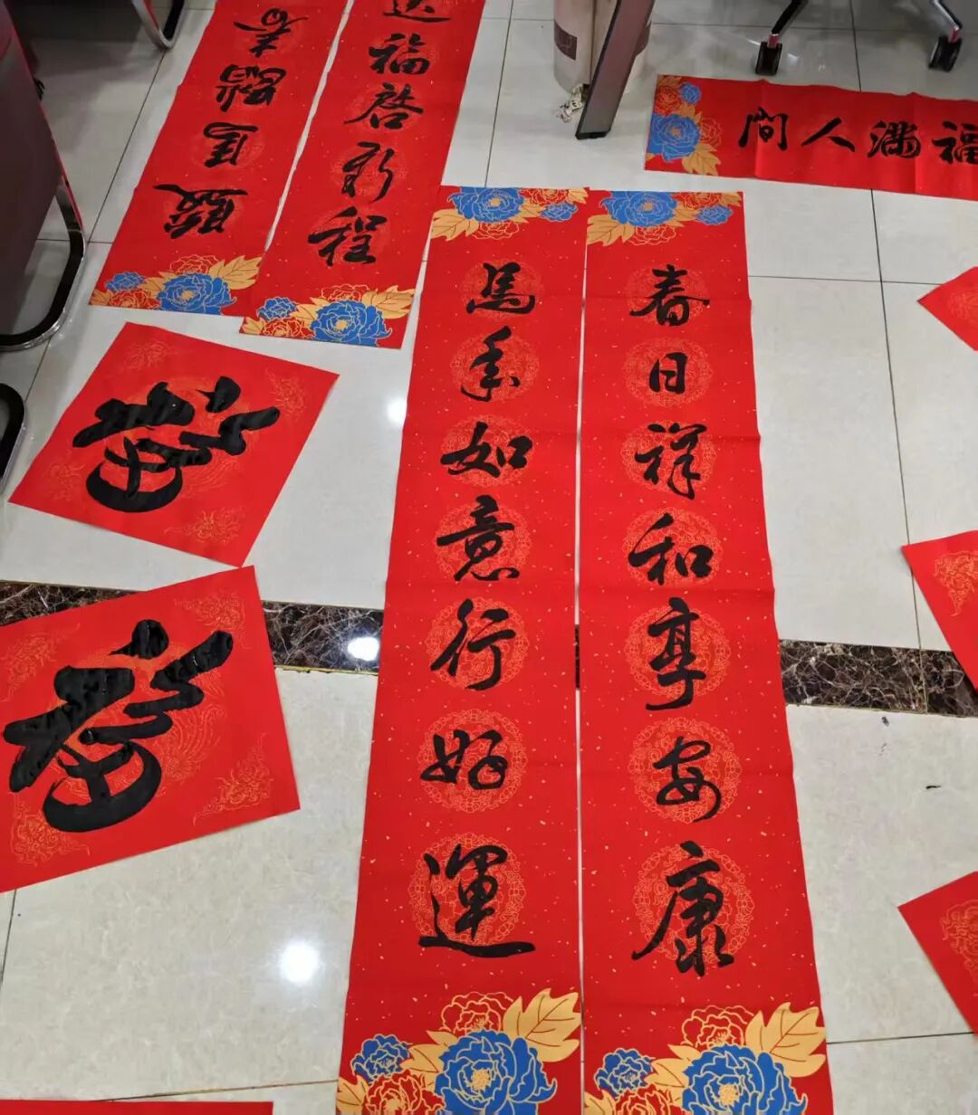 闻讯而来的群众围聚案前,或静心观赏创作过程,或挑选心仪的春联福字,脸上洋溢着喜悦的笑容。“这些手写的春联太有意义了,收到这真诚的祝福,感觉年味儿一下子就浓了!”刚领到春联的大爷满心欢喜地说。活动中,师生们不顾辛劳,连续创作数小时,累计送出春联、福字作品两百余件,让大家在笔墨书香中提前感受新春的喜庆与温暖。