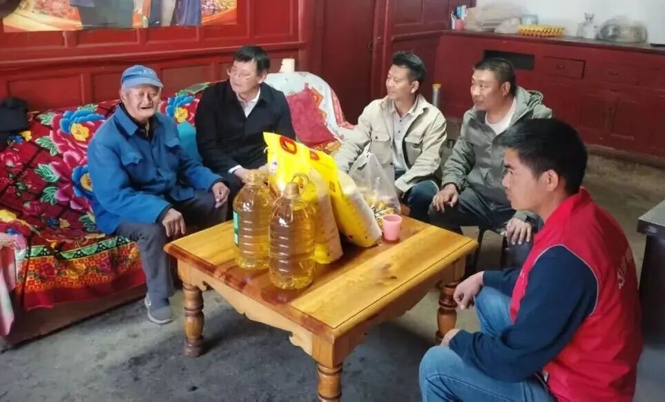 随后,慰问组与村干部走进困难老人、留守儿童家中,与他们亲切交谈,仔细询问身体状况、学习情况,耐心倾听心声,鼓励困难老人保持乐观心态,叮嘱留守儿童好好学习,送上米、油等生活物资,让困难群体在寒冬中感受到浓浓的关怀与温暖。