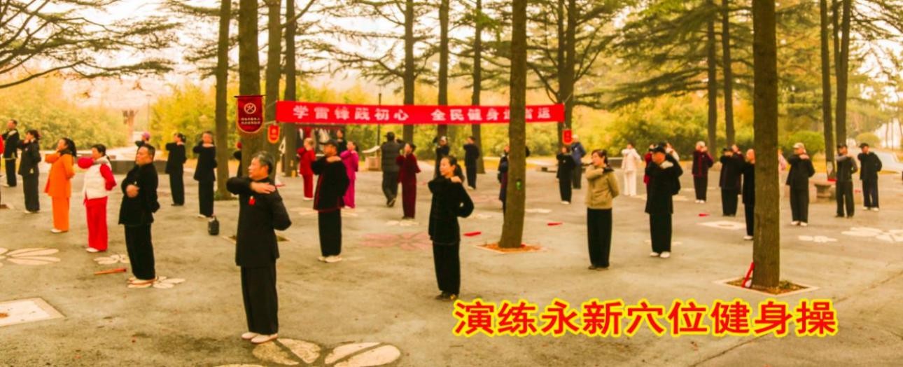 随后,隋明新带领队员依次展演永新穴位健身操、健身气功八段锦、二十四式太极拳及太极功夫扇。展演队员精神饱满、动作规范、舒展流畅,充分展现了太极文化与传统养生功法的独特魅力,彰显老年健身爱好者昂扬向上、乐观进取的精神风貌。现场秩序井然、氛围热烈,大家在交流展示中感受运动乐趣、践行雷锋精神,进一步增强了科学健身意识和团队凝聚力。