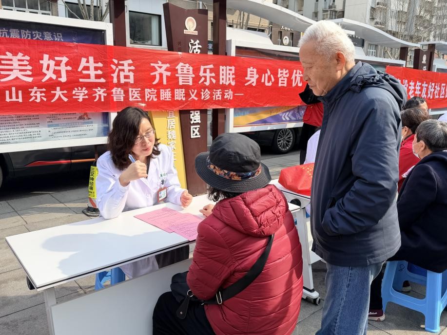 参加义诊活动,守护健康“防线”。活动当天,老同志们首先来到设于市中区麟祥街社区的义诊场地。来自齐鲁医院老年医学科的专家团队耐心询问老同志们的睡眠习惯、身体状况,针对失眠、早醒、夜间易醒等常见问题提供专业指导。