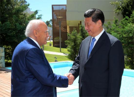 习近平表示,帕普利亚斯总统亲自来罗德岛同我会见,这体现了希腊人民和你本人对中国人民的深情厚谊。你是德高望重的政治家,是中国人民的老朋友,为中希关系发展作出了重要贡献,我对此表示高度赞赏。