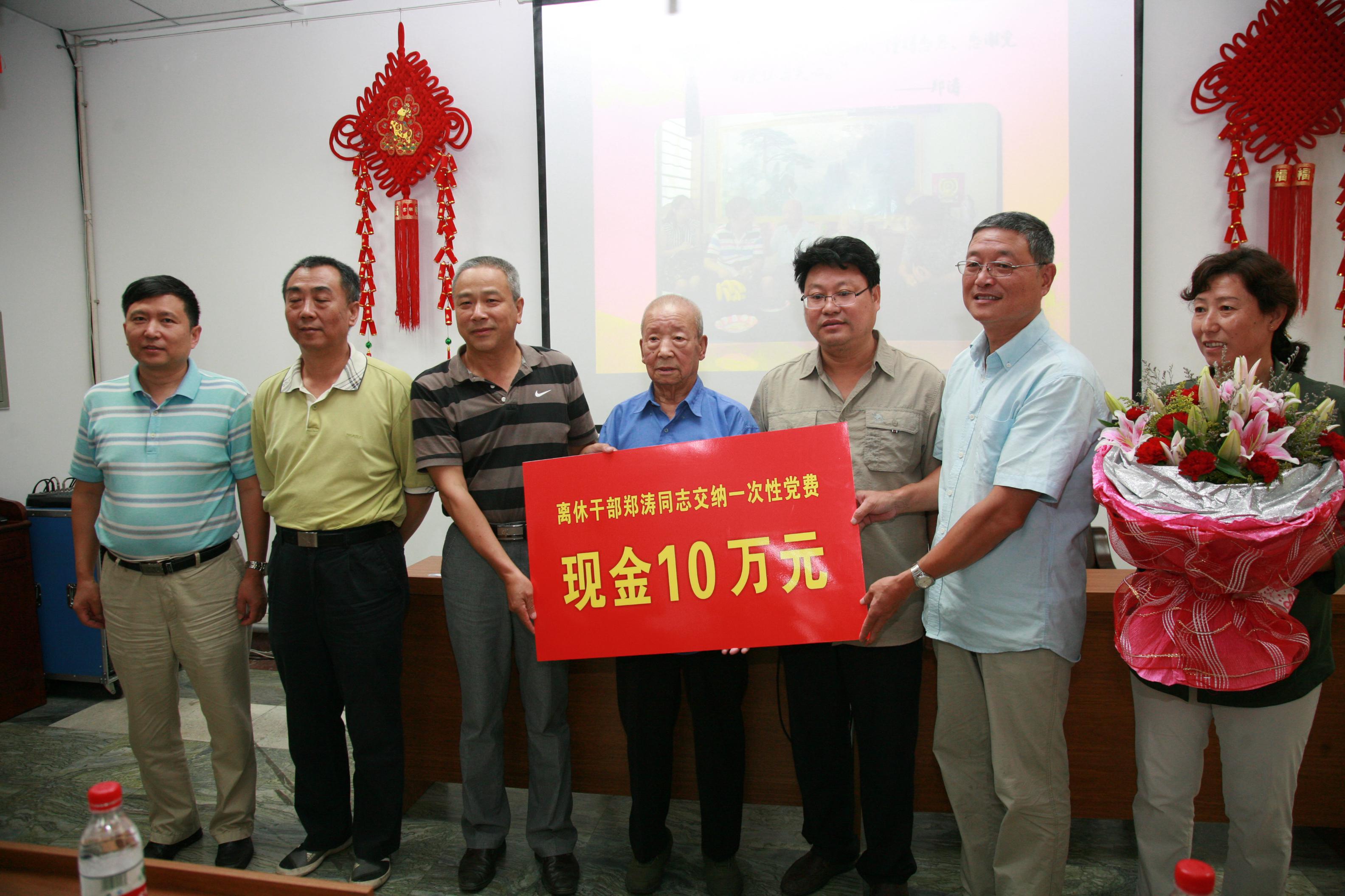 在纪念中国人民抗日战争暨世界反法西斯战争胜利70周年之际,93岁的抗日老战士、老共产党员、中国工程物理研究院(以下简称中物院)五所离休干部郑涛同志向党组织一次性缴纳特殊党费10万元,表达他对党的感恩之情。