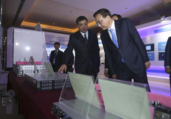“哦,是吗?”他弯下腰来,仔细查看每件展品。这是5月25日上午,李克强出席贵州中国大数据产业峰会暨中国电子商务创新发展峰会(简称“数博会”)开幕式前,参观贵州大数据发展成果展时的一幕。