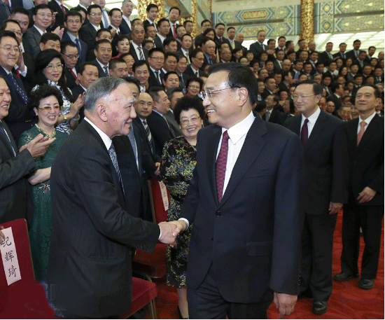 6月2日,国务院总理李克强在北京人民大会堂金色大厅会见出席第八届世界华侨华人社团联谊大会的全体代表。 新华社记者庞兴雷摄