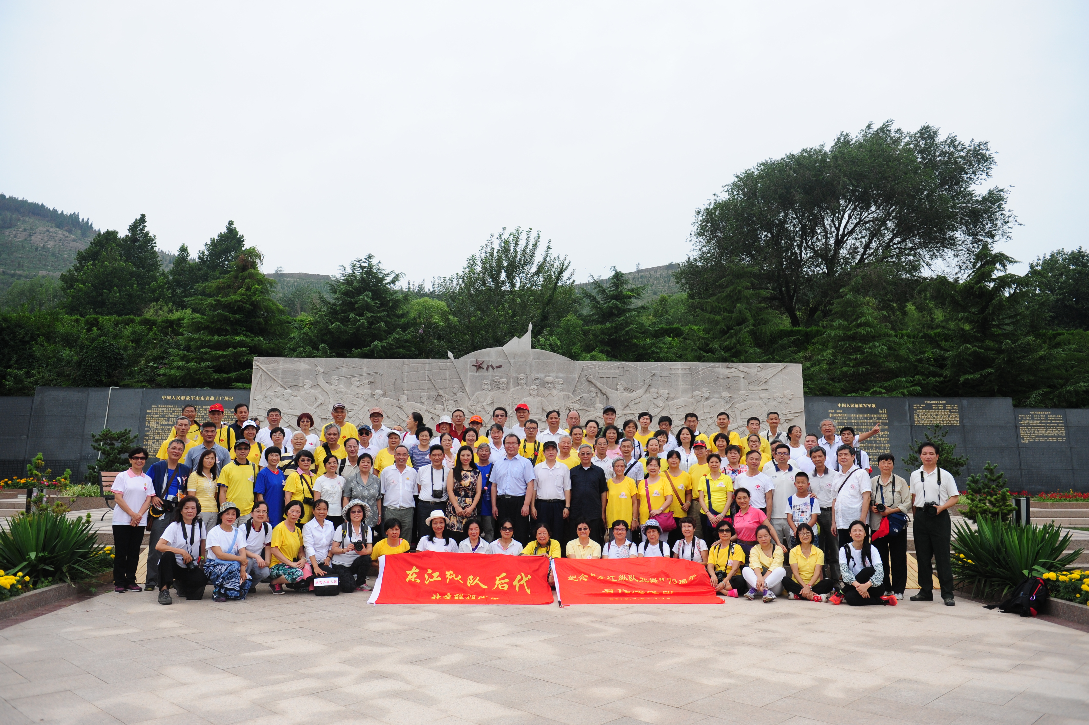 活动参与人员在东江纵队抗日将士北撤山东纪念碑前合影留念