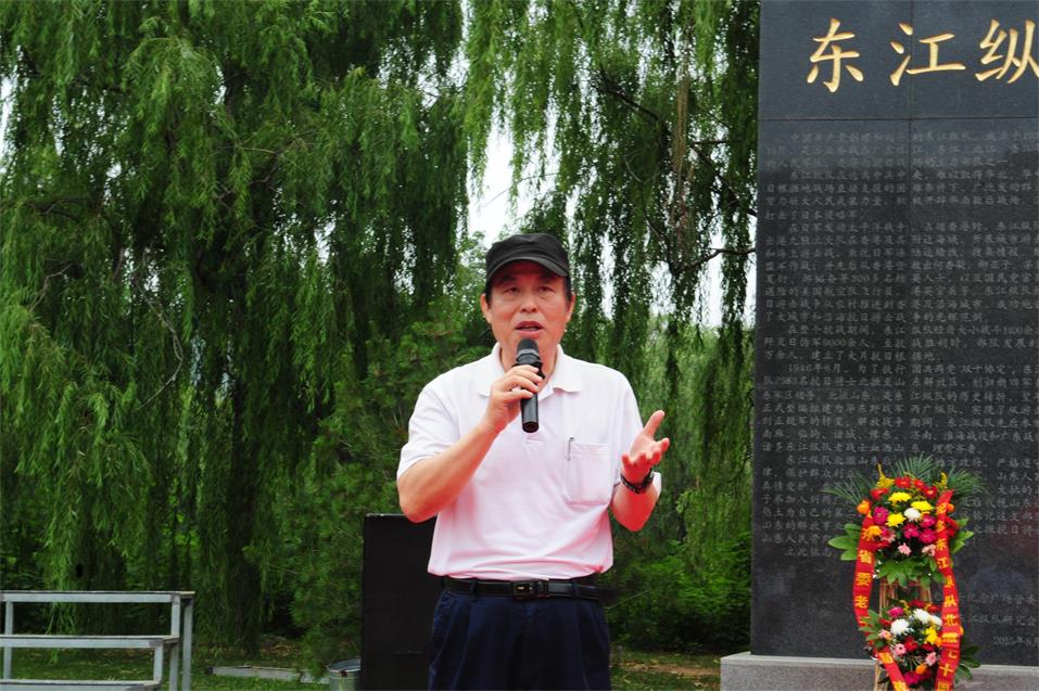 纪念仪式上,山东省委老干部局副局长吕德义同志发表致辞。他指出,今日东江纵队抗日将士后代何以重走父辈北撤之路?那是为了更好的纪念,是为了珍惜来之不易的和平盛世,更是为了让东江纵队老一辈的精神能够传承下去。“忘记历史就意味着背叛”,我们要以碑为鉴,回望历史、记住历史,一起将山东兵精神、东江纵队精神传承下去!