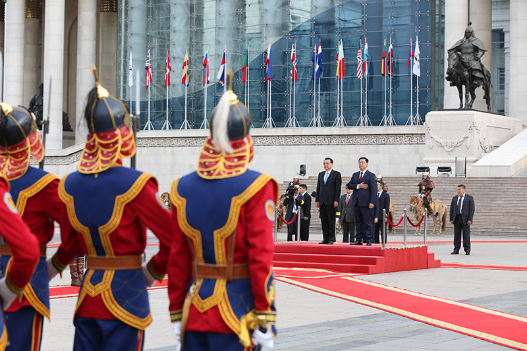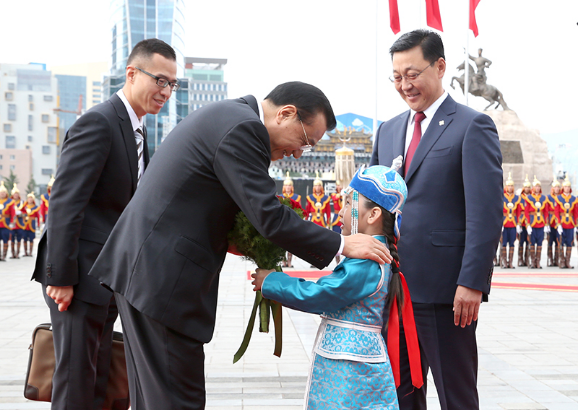 2、乌兰巴托铺就红地毯,中国总理来啦!新华社 马占成 摄
