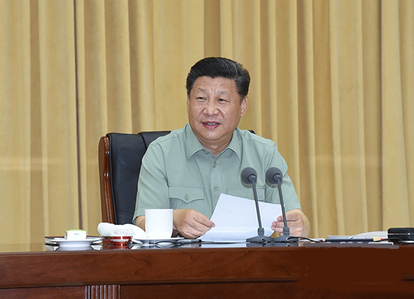 八一建军节到来之际,中共中央总书记、国家主席、中央军委主席习近平7月27日上午视察陆军机关,代表党中央和中央军委,对陆军第一次党代表大会的召开表示热烈的祝贺,向人民解放军全体指战员、武警部队全体官兵、民兵预备役人员致以节日的问候。这是习近平听取陆军工作汇报后发表重要讲话。新华社记者 李刚 摄