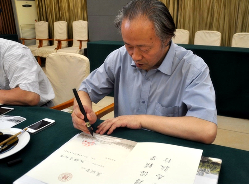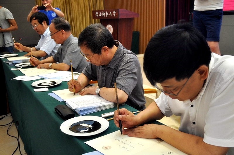 上图左起第一陕西师范大学副校长党怀兴为新生书写录取通知书