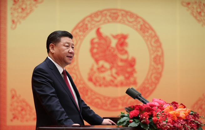 1月26日,中共中央、国务院在北京人民大会堂举行2017年春节团拜会。中共中央总书记、国家主席、中央军委主席习近平发表重要讲话。新华社记者 鞠 鹏摄
