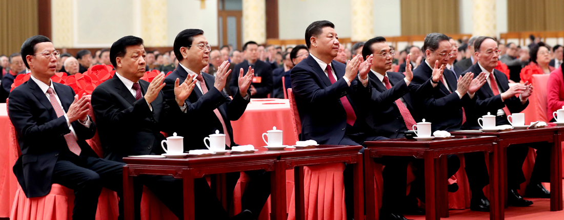 上午10时,在欢快的乐曲声中,习近平等党和国家领导人步入大厅,全场响起热烈掌声。