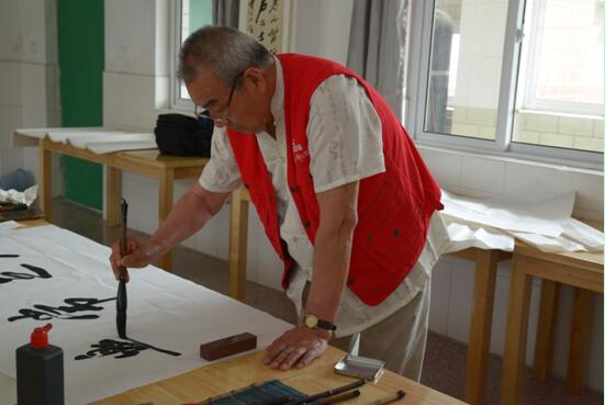 6月13日,老干部之家书画协会常务副会长时玉岭、副会长谭正源,以及省直老战士合唱团支教队队长于谦,来到山东省济南市长清区广里小学,为该校新建成的孔子学堂书写“孔子语录”。