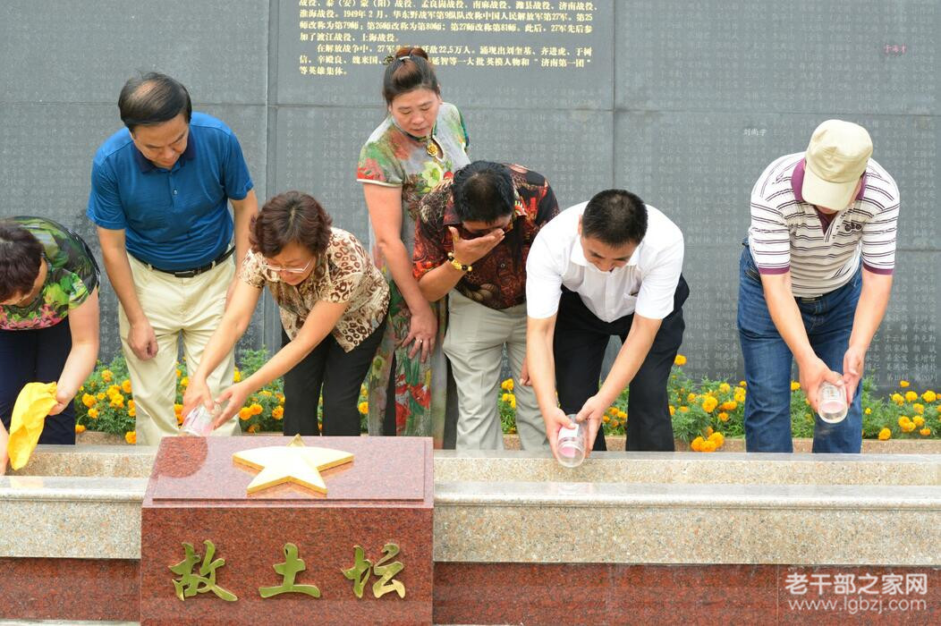 福建山东南下干部的后代们将带来的父亲坟前墓土,撒入故土坛,以了却父亲魂归故里的心愿