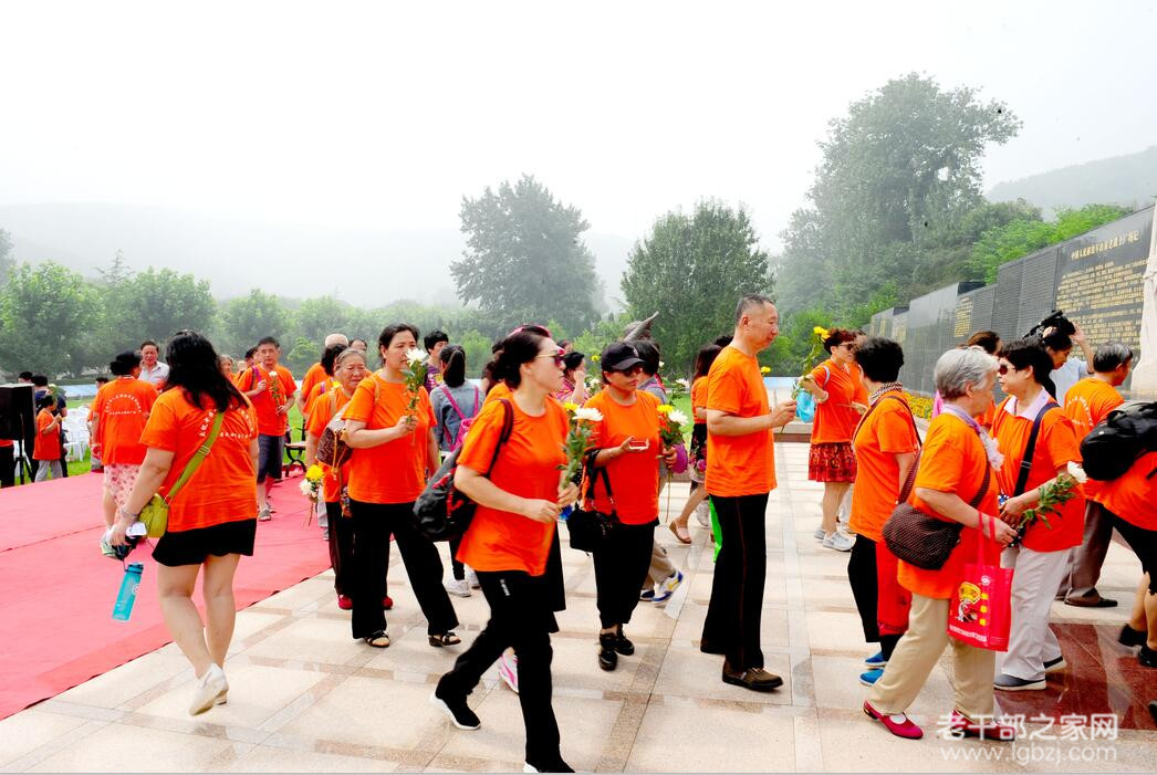 老战士后代们排队为老战士纪念墙刻名的将士们献花