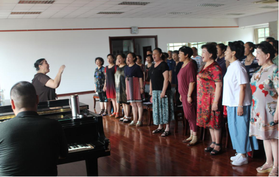 排练中,王素华按照专业歌唱标准辅导几乎没有唱歌基础的团员们,她想法设法地将深奥的乐理知识用通俗易懂的比喻解释给大家听。团员们也竭尽全力多练习、找不足,克服困难、勤学苦练,以极其高涨的热情参加歌唱党、歌唱祖国的大合唱活动。他们高兴地说:“唱正能量歌曲,心灵深处的爱国情怀像火苗般的熊熊燃烧!”功夫不负有心人,整个合唱团的演唱水平有了长足进步,稍有难度的歌曲也唱得像模像样。