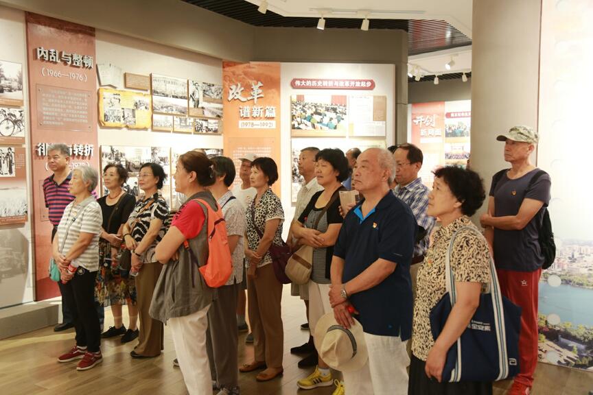 8月24日上午,近50名离退休党员和工作人员采取乘公交车、骑电动车或步行方式,来到中共山东党史陈列馆。工作部党支部书记、离退休党总支副书记王国波主持党徽颁发佩戴仪式,宣读了(鲁直机关党工组字【2017】12号)文件,重申党员在参加会议、开展志愿服务等公务活动中统一佩戴党员徽章,亮明身份。工作部工作人员现场为老党员发放党员徽章,并协助佩戴。之后,大家兴致勃勃观看了陈列馆中展示的山东党史资料图片,认真聆听讲解员的讲解,了解了中国共产党山东地方组织的发展、壮大及中共山东地方组织率领人民群众进行革命、建设和改革开放的历史巨变。