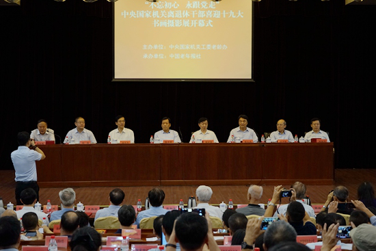 9月19日上午,“不忘初心,永跟党走”中央国家机关离退休干部喜迎十九大书画摄影展在康铭大厦举办开幕式。中央国家机关工委副书记陈存根,民政部党组书记、部长黄树贤,工委副书记姚志平、常大光,工委委员、办公室主任刘涛,中组部老干部局副巡视员赵胜利,全国老龄办党组成员、副主任肖才伟,全国人大机关研究室原副主任程湘清,中央纪委驻最高人民法院纪检组原组长李玉成,原中央纪委驻国内贸易部纪检组组长靳玉德,原铁道部副部长国林,中国地震局原党组成员、副局长修济刚,中央国家机关工委原工委委员、组织部部长李振国,中央国家机关工委原工委委员、宣传部部长陈祥如,中央国家机关工委老龄办副主任李瑛、夏九焘,巡视员高弘倩、副巡视员张淑兰,民政部办公厅主任张卫星、中国老年报社社长、党委书记徐华等领导嘉宾出席,中央国家机关离退休干部工作部门负责同志、获奖离退休干部代表340余人参加。开幕式由工委老龄办常务副主任王立连主持。
