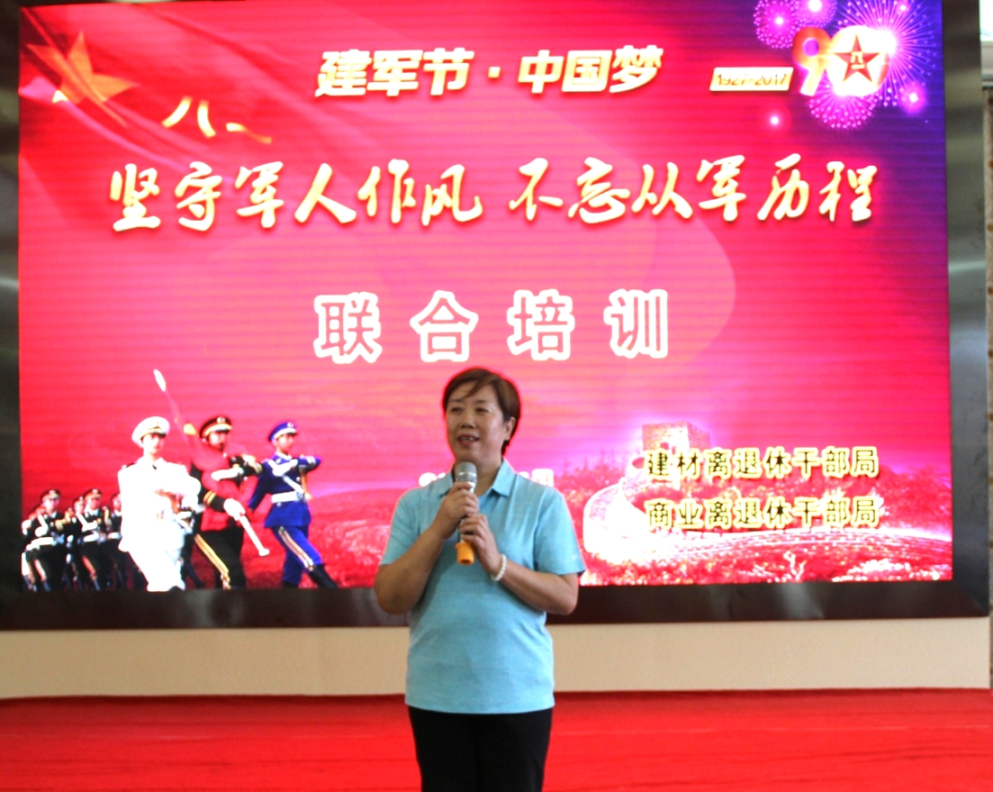 为加强在职干部的教育培养,国资委建材离退休干部局与国资委商业离退休干部局针对在职军转干部多的实际情况,7月27日至28日,对在职干部进行了联合培训。建材离退休干部局局长刘晓玫、党委书记胡燕平和商业离退休干部局局长、党委书记徐明进带领两局在职干部65名(其中34名军转干部)参加了“坚守军人作风,不忘从军经历”的主题培训,主题培训由建材离退休干部局党委副书记、纪委书记池京珍主持。