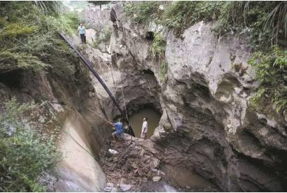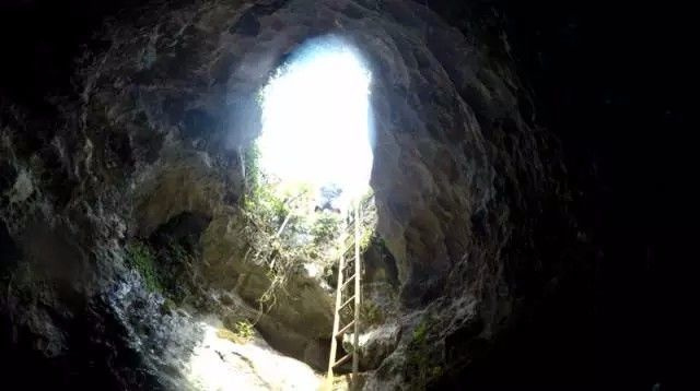酒海井实际上是地下河的天窗孔。广西地下河的水系是很大的,酒海井这里还没真正勘查过,它的主洞口约2米×4米。