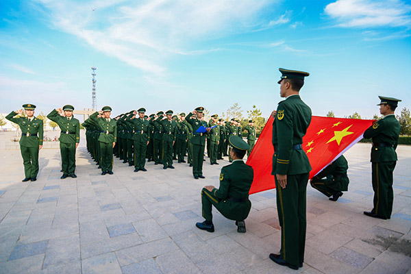 9月27日下午,伴随着嘹亮的国歌声,全体官兵向革命先烈敬献上寄托哀思的花圈,面向纪念碑默哀祭奠,缅怀烈士功绩,弘扬烈士精神。随后,全体官兵在国旗下庄严宣誓:“对党忠诚、服务人民、执法公正、纪律严明……”宣誓声铿锵有力,久久回荡在空中。