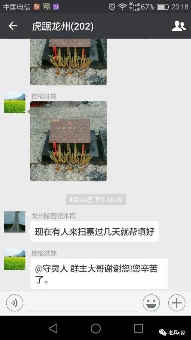 你看这个名叫当兵的人,其实是个女的。她哥哥甘永先牺牲后,她也应征入伍。钮本同掏出手机,给记者看他去年创建的虎踞龙州微信群。群里有200多名老兵和烈属,都是他长期保持联系的对象。