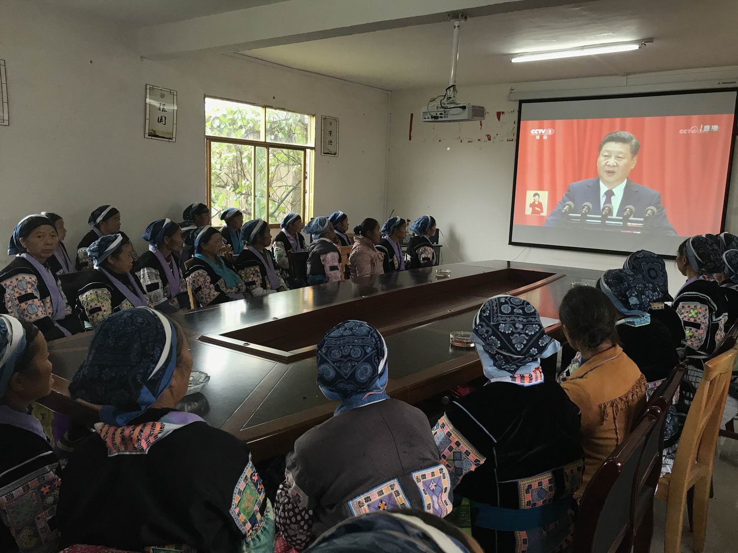 黔东南雷山县大塘镇新桥村组织苗族同胞、乡镇干部等80余人,由老干部“同声传译”党的十九大开幕盛况,共同聆听习近平总书记在大会上作的报告。土生土长的苗寨李脑楠阿姨不懂汉话,“很高兴我能第一时间用自己的家乡话听到习总书记讲话,感到非常亲切与激动!”李阿姨在杨耀奎老干部的帮助下用苗语说道。