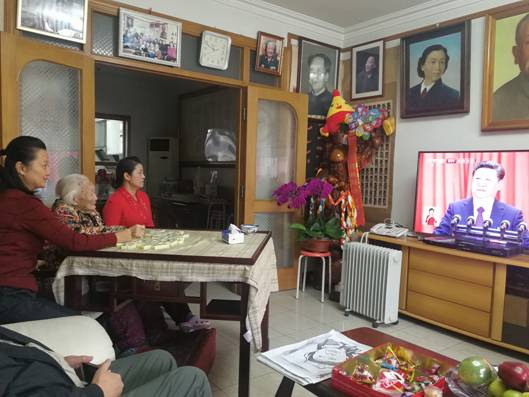 兵器工业山西新华公司老同志收看十九大开幕会时齐唱国歌