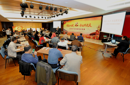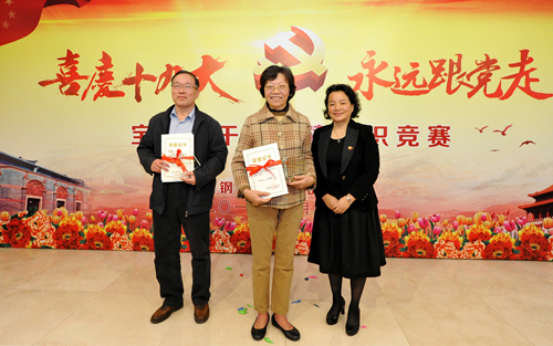为庆祝党的十九大胜利召开,今天上午,以“喜庆十九大,永远跟党走”为主题的宝钢退休干部党建知识竞赛在宝钢老干部服务管理中心举行。宝钢离退休干部党工委下属的14个退休干部党支部全部组队参赛,50名退休党员欢聚一堂,重温党的十八大以来取得的新成就,彰显了宝钢离退休干部党员政治坚定、思想常新、理想永存的决心和信心。