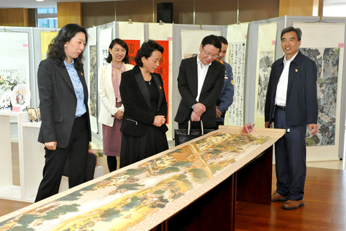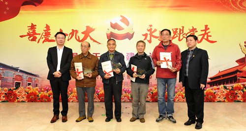 ▲9:30开始的活动,很早就有老同志陆续来到活动现场,大家边交流着对题库内的党建知识准备情况,热议十九大精神,边互相在展示板前拍照留念。