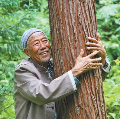 在八五林场里,刘安国像爱自己的孩子一样拥抱树木。