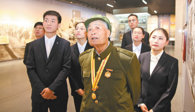 12月3日,莒南县大店镇的山东省政府旧址内,抗战老军人葛树彪(中)为团员代表们讲述抗战故事。连日来,山东临沂市莒南县积极开展“学习十九大精神,宣传服务下基层”主题宣传教育活动,举办宣讲会、座谈研讨、主题党团日等活动,并组织宣讲小分队和老党员深入农村、社区、爱国主义基地,向群众开展面对面、互动式宣讲,让党的十九大精神落实到基层。