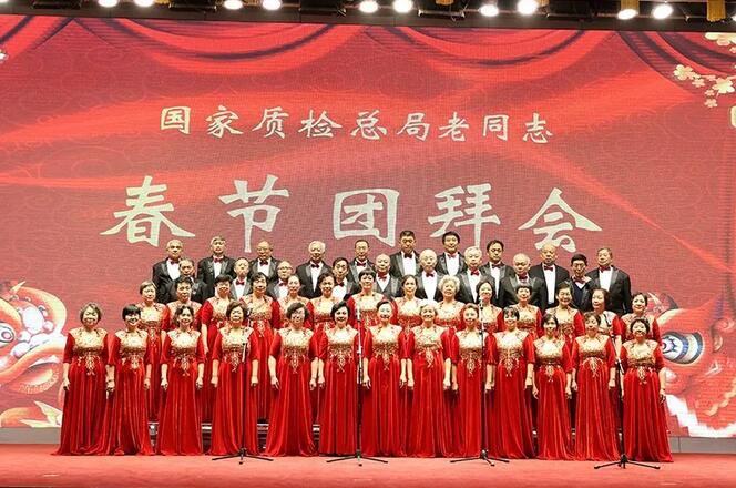 广大老同志对2017年质检工作取得的成绩表示祝贺,对总局和离退休干部局工作人员在过去的一年对老干部的热情细致的服务工作表示感谢,并衷心希望全系统在总局党组的带领下,在2018年取得新的更大的成绩。团拜会上,老同志们表演了自编的歌舞,展现了老同志幸福多彩的晚年生活,表达了对祖国和质检事业的美好祝愿。