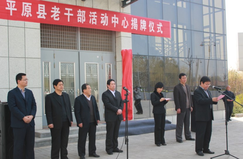 4月13日,平原县老干部活动中心举行揭牌仪式。副县长何新梅同志主持仪式,县委副书记赵明国同志致辞,市委老干部局调研员、副局长赵风勇同志等领导出席仪式,并为老干部活动中心揭牌。县委离退休干部工作领导小组成员单位负责人;正副县级离退休及内退干部、正科级实职退休干部;县直各部门分管副职;老干部社团负责人以及龙门街道办事处机关干部共计200余人参加了揭牌仪式。