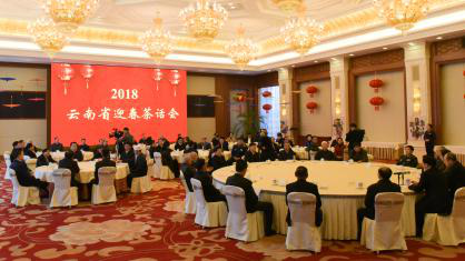 2月13日下午,2018年云南省迎春茶话会在昆明举行。云南省党政军领导与省老领导、老同志,在滇“两院”院士,省级各民主党派和工商联主要负责人欢聚一堂,喜迎佳节,共话云岭大地跨越发展,同祝伟大祖国繁荣昌盛。