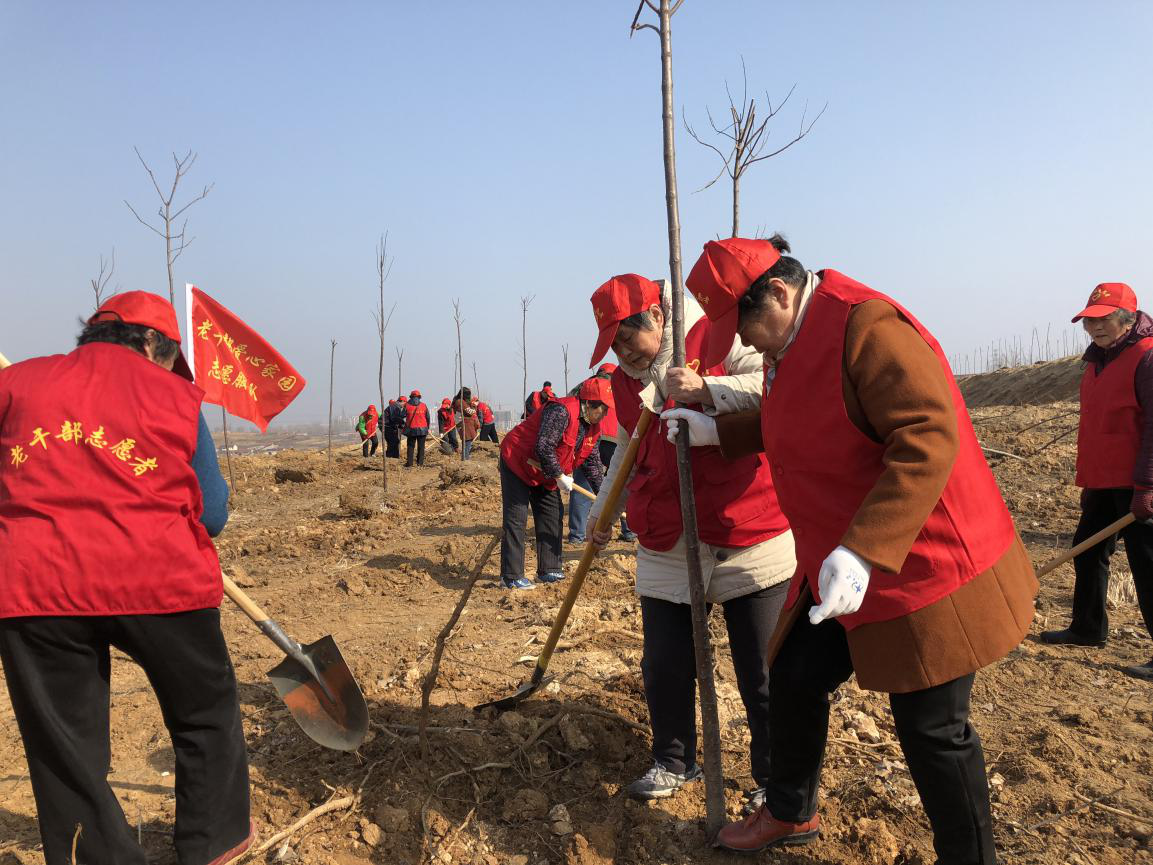 一大早,众多老干部志愿者乘坐大巴车来到海德植物园,在林业局同志的指引下,挥舞铁锨,填坑培土,这些老干部志愿者都在60岁以上,最大的88岁,有的腿脚还不灵便,但他们纷纷表示,植树造林,美化家乡,人人有责,虽然年龄大了,种不几棵树,但却能表达爱祖国、爱家乡的心愿。