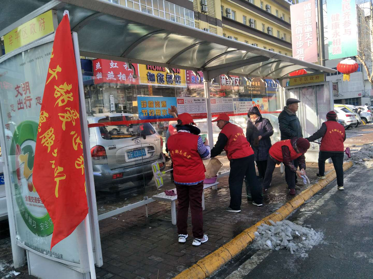 “美化文明城市”卫生清扫活动。3月5日,组织老干部爱心家园志愿服务队成员自带工具,擦洗城区公交亭的玻璃和座椅,清除小广告,为市民出行提供了便利,为创造整洁有序、健康宜居的文明城市发挥了积极作用。