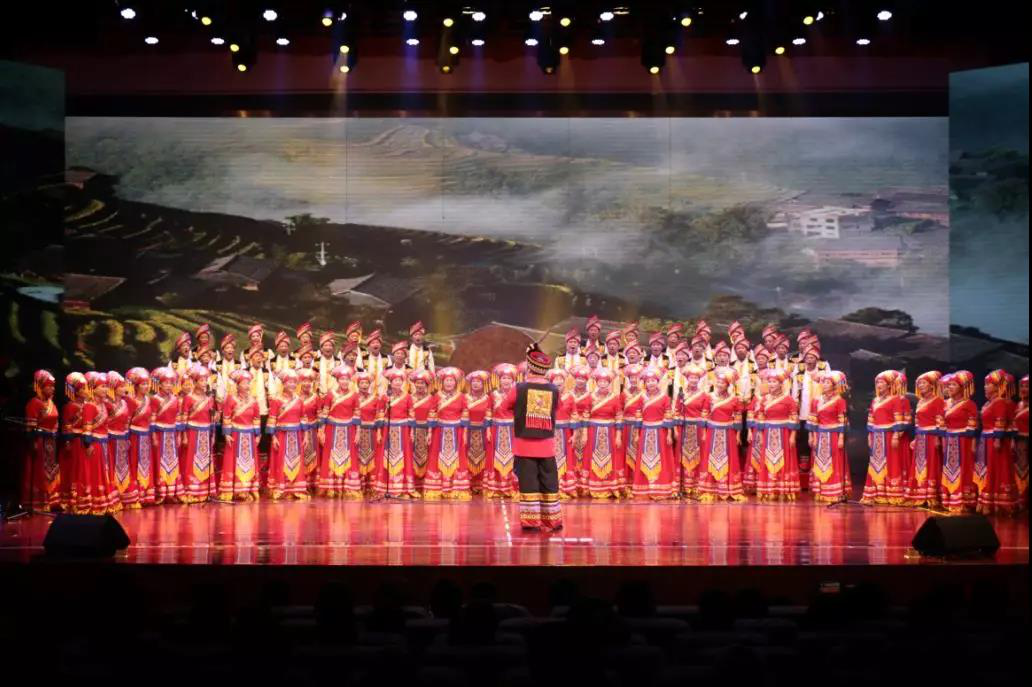 ▲合唱《壮族大歌》(上图)和舞蹈《乖乖花瑶寨》(下图)演绎了壮族、瑶族等民族独具特色的民族风情和民族文化。
