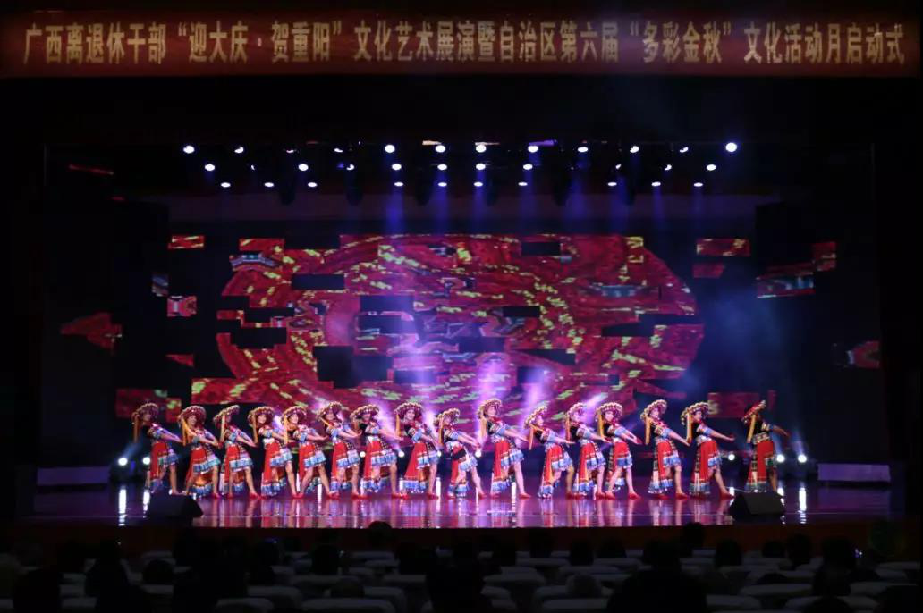 随后,出席启动式的领导和嘉宾观看了以“展示壮乡美·齐赞新时代”为主题的广西离退休干部“迎大庆·贺重阳”文化艺术展演。16个参演节目是从各市及区直单位上报的30多个节目中精选出来的,各个精彩纷呈,表演形式多样,民族色彩浓厚,营造了喜迎大庆的热烈氛围。