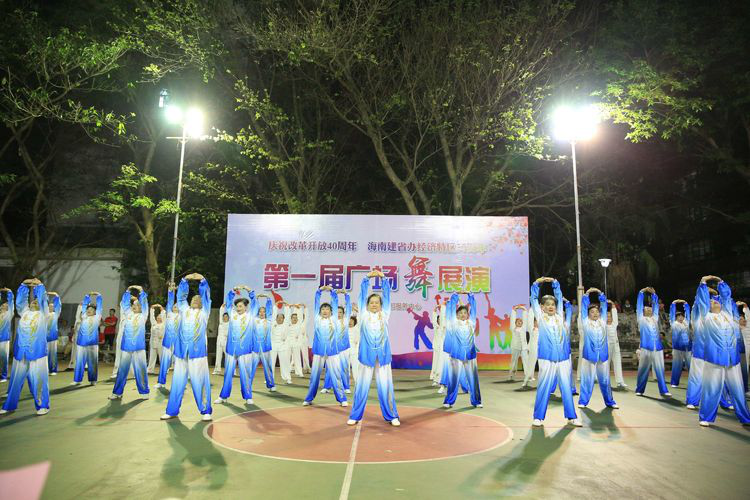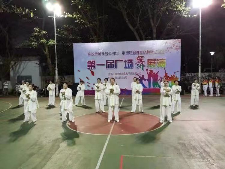 10月25日晚,海南省农垦老干部服务中心为“庆祝改革开放40周年,海南建省办特区30周年”,以多姿多彩的广场舞表达中心老年人对海南建设自贸区和中国特色自贸港的喜悦之情,举办了农垦老干部服务中心第一届广场舞展演。参加展演的代表队共有8支,140多人,与中心牵手共建大学生志愿服务基地的海口经济学院网络学院派出16名志愿者前来助兴。展演队员变换各种队列,表演如行云流水,灵动的手势、稳健的步伐,引来现场一片片掌声,为观众献上一场精彩的视觉盛宴。 农垦老干部服务中心应农垦新一轮改革而诞生,自2017年3月成立以来,以高度的政治责任感和满腔的工作热情,认真落实老干部政治生活待遇,创新工作方式,充分发挥老干部政治优势,有效地促进中心老干部的工作健康发展,取得了一定的成绩。还积极创造条件整合资源,搭建各种爱好兴趣平台来提升老同志精神文化生活品质,积极扶持老同志各种兴趣爱好团队。为活跃在农垦东、西大院和周边的广场舞、太极拳、模特队配备了音响设备,举办了两期培训班,进一步拓展了中心老年人文化生活舞台,吸引带动更多老年人走出家门,加入锻炼健身的行列来营造积极向上、欢乐祥和、健康文明的精神风貌和社会氛围。 这次广场舞展演,中心成立了精干的筹备领导小组,工作分四个阶段进行:自愿报名阶段、选拔阶段、修改提升阶段、展演阶段。采取了“以展演促进训练”的方式,通过组织研讨、资金支持、参与铺导、配合培训等方式,让所有展演作品都呈现健身性、观赏性、时代性和艺术性。编排队伍要健康向上,传递正能量,展现团队协作的精神风貌。通过展演激发中心老同志的参与热情,促进各兴趣团队的交流和推广,达到老有所教、老有所学、老有所为、老有所乐的目的,推动中心工作迈上一个新台阶。