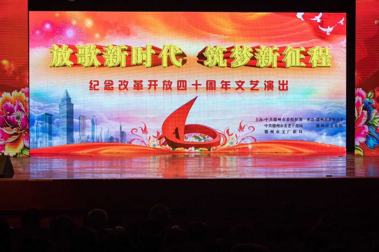 德州市老年大学举办纪念改革开放四十周年文艺演出 2018-11-12 13:12 编辑:老干部之家 11月9日下午,“放歌新时代,筑梦新征程——德州市老年大学纪念改革开放四十周年文艺演出”在黑马剧院举办。老年大学师生先后演出器乐、独唱、京剧、舞蹈、曲艺、合唱等节目,纪念改革开放四十周年,展现了老年大学办学成果。 查看所有评论