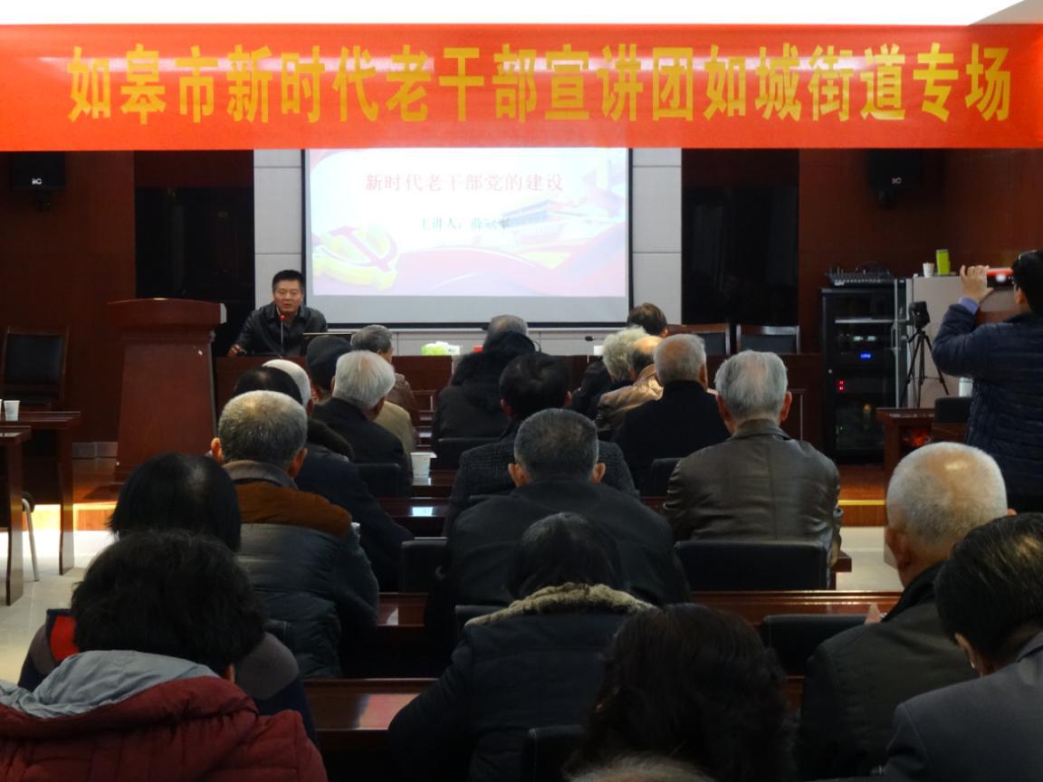 为深入学习贯彻习近平新时代中国特色社会主义思想,引导全市离退休干部党员自觉加强党的创新理论武装。近期,如皋市委老干部局依托省基层理论宣讲先进集体“姚呈明理论武装工作室”和市党建研究会,专门成立以9名理论骨干为成员的“新时代老干部宣讲团”,已赴全市14个镇(区、街道)、市级机关部门老干部党组织进行专场宣讲12场次,近千名离退休干部党员现场聆听了报告。