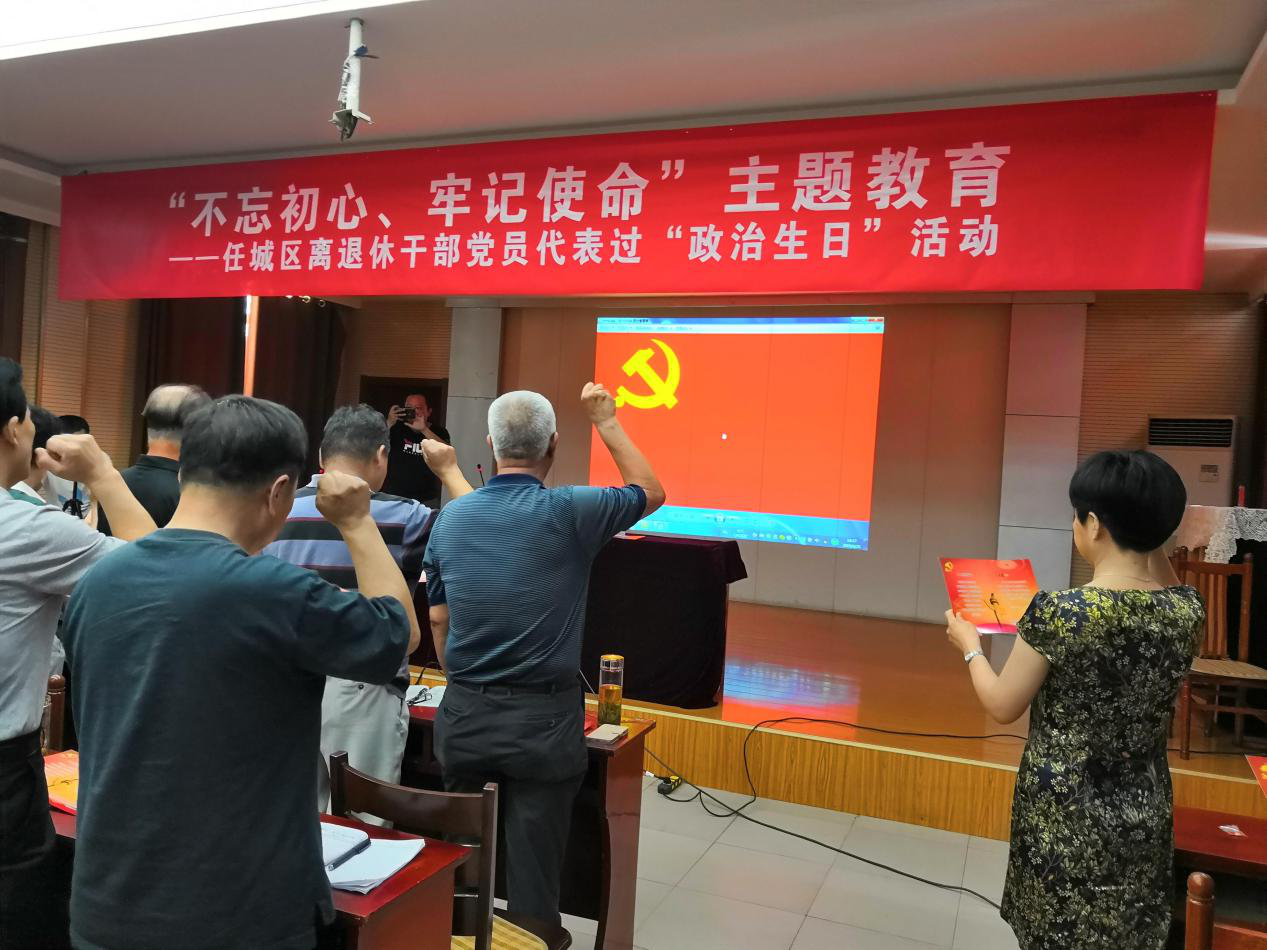 为进一步强化离退休干部党员身份意识、荣誉意识、宗旨意识和责任意识,切实发挥先锋模范作用,让广大离退休干部党员感受到党组织的温暖和关怀,6月25日上午,济宁市任城区组织举办“不忘初心、牢记使命”主题教育—全区离退休干部党员代表集体过“政治生日”活动,全区离退休干部党组织书记、离退休干部代表100余人参加了活动。