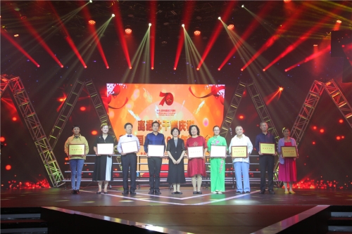 演出采取舞蹈、合唱、器乐演奏、诗歌朗诵等多种形式,内容丰富、形式多样。山东省实验小学以舞蹈《我的祖国》拉开了演出序幕,各单位表演队悉数亮相,节目表演精彩纷呈,老同志精神抖擞、神采飞扬,以饱满的热情展现出良好的精神状态。老干部的演出表达了对新中国成立70周年的衷心祝贺,表现出了对美好生活的幸福向往,展现出老一辈教育工作者积极向上、努力拼搏的时代精神,演出得到了观众们的一致称赞。节目间隙还穿插进行了抽奖活动,活跃了现场气氛。演出结束后,黄琦同志为在这次演出中表现突出的单位颁发了“最佳节目奖”,并与获奖单位合影留念。