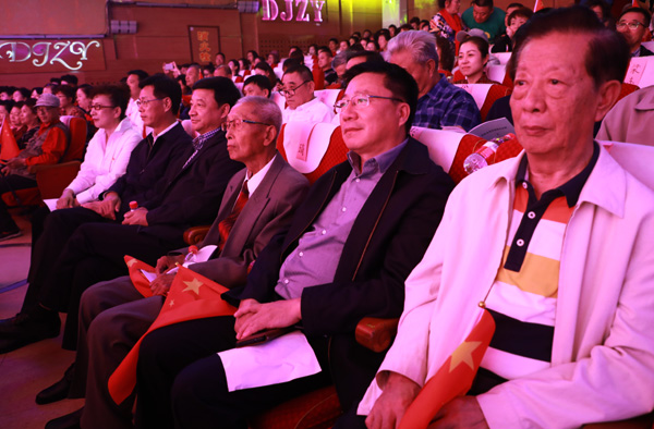 开场舞《盛世欢歌》拉开了演出帷幕。整场演出主题鲜明,内容精彩,大部分为原创节目。舞台上,老干部们神采奕奕、激情飞扬,献上了音乐舞蹈快板《祖国巨变乐开怀》、歌曲《换了人间》、玉韵歌舞《祖国山河披锦绣》、戏曲联唱《情溢乾坤福满家园》、模特展示《诗与旗袍》等原创高品质节目,以及小合唱《我家在中国》、朗诵《今夜星光灿烂》、助演舞蹈《欢乐民族风》等高质量节目,共同歌颂祖国家乡发生的沧桑巨变,细数新时代的成就与梦想,充分展示了离退休干部永远跟党走的火热情怀。特别是93岁的离休干部王淑文老人和她的团队,通过原创歌曲《唱一唱老干部活动中心我晚情的家》表达对当下欢乐、幸福生活的赞美,表达对市委、市政府和老干部工作部门感谢的心声,感动了全场观众。整场演出在全场同唱《我和我的祖国》中精彩落幕。